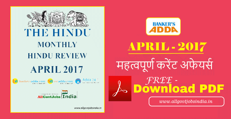 Bankers Adda Current Affairs PDF 2017 April | The Hindu Review – Download Here