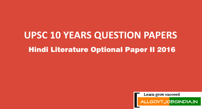 Civil Services IAS UPSC Mains Exam 2016 Hindi Literature Optional Paper II