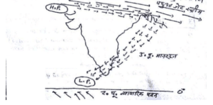 VI) अर्ध्व वायु संचरण ( जेट स्ट्रीम ) : जेट स्ट्रीम ऊपरी शोभमणल में आम तौर पर मध्य अक्षांश में भूमि से 12 Km ऊपर पश्चिम से पूर्व तीव्र गति से चलने वाली एक धारा का नाम है। इसकी गीत सामान्यत 150 – 300 Kmp की होती है।