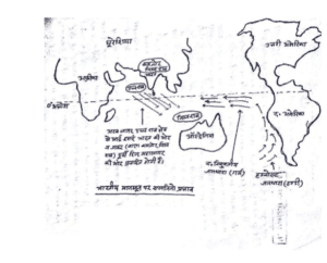 V) मानसूनी हवाएं : मानसूनी हवाएं भी भारतीय जलवायु को प्रभावित करती है हवाओं में आर्द्रता की मात्रा, हवाओं की दिशा एवं गति आदि।